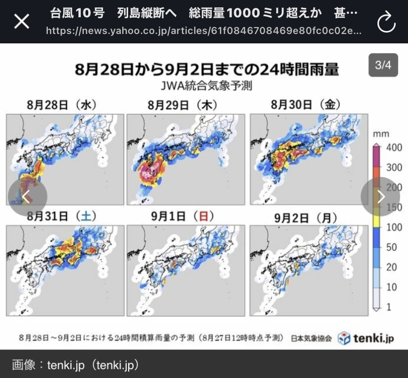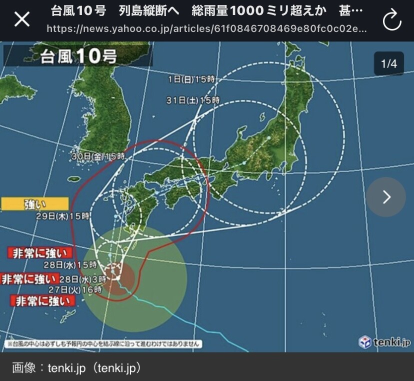 2024年08月27日 台風接近中 大きな台風が 進路を変えてゆっくり接近中です。 このゆっくりと言うのが曲者です。 四国に住む我々には慣れたモノですが、先日の松山城のコトもありますので特に土砂災害には注意が必要ですね。 各自、情報を収集し適切な行動を心がけましょう。 台風の際の鉄則は『動くな!』です。 待ってたら去って行きます。 やむを得ず外出される時は、くれぐれもご注意下さいませ。 ・ カテゴリなしの他の記事 < 前の記事次の記事 > コメント このブログにコメントするにはログインが必要です。 さんログアウト この記事には許可ユーザしかコメントができません。 コメントフォーム 名前 コメント 評価する リセット リセット 顔 星 投稿する 情報を記憶